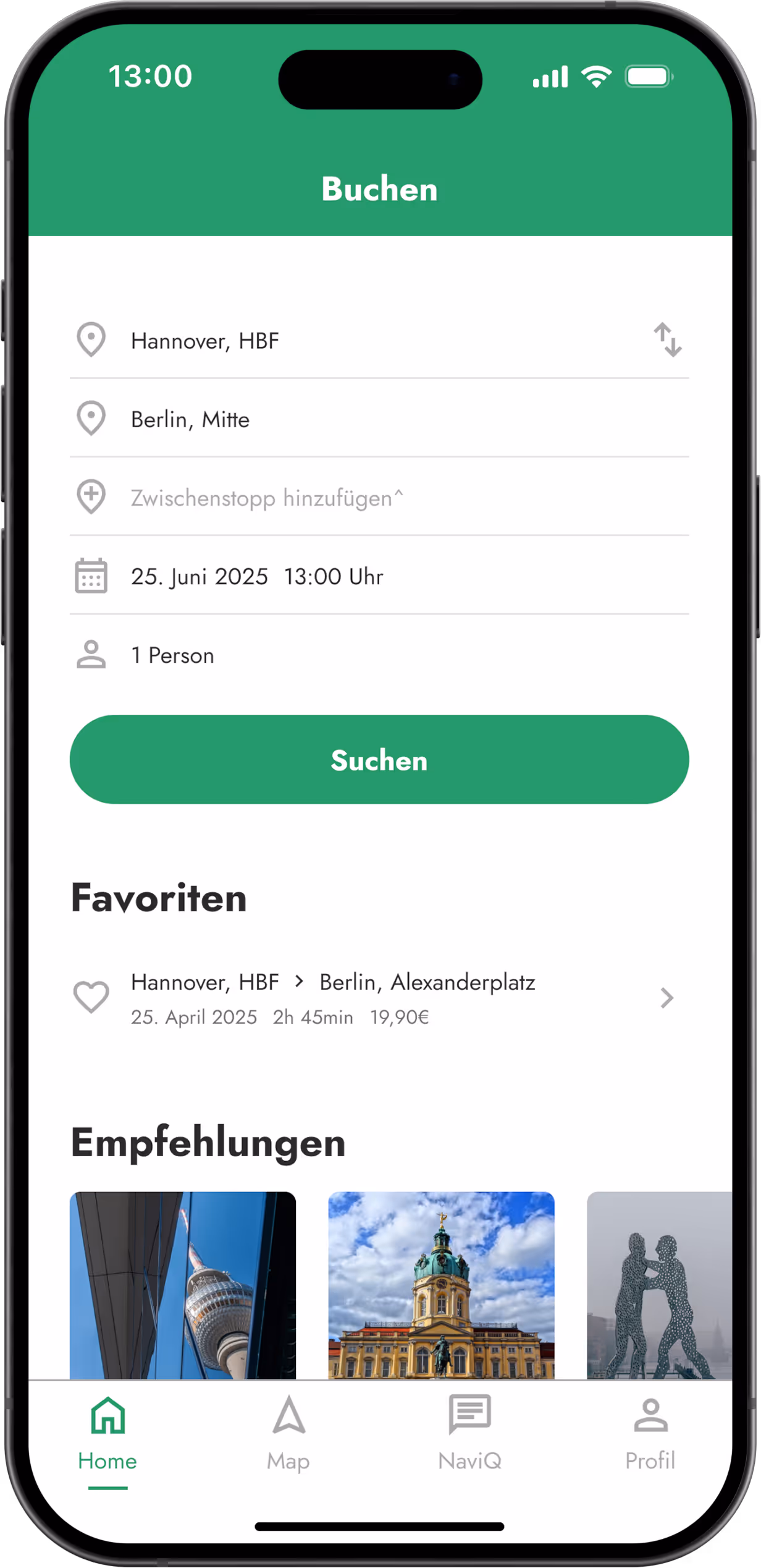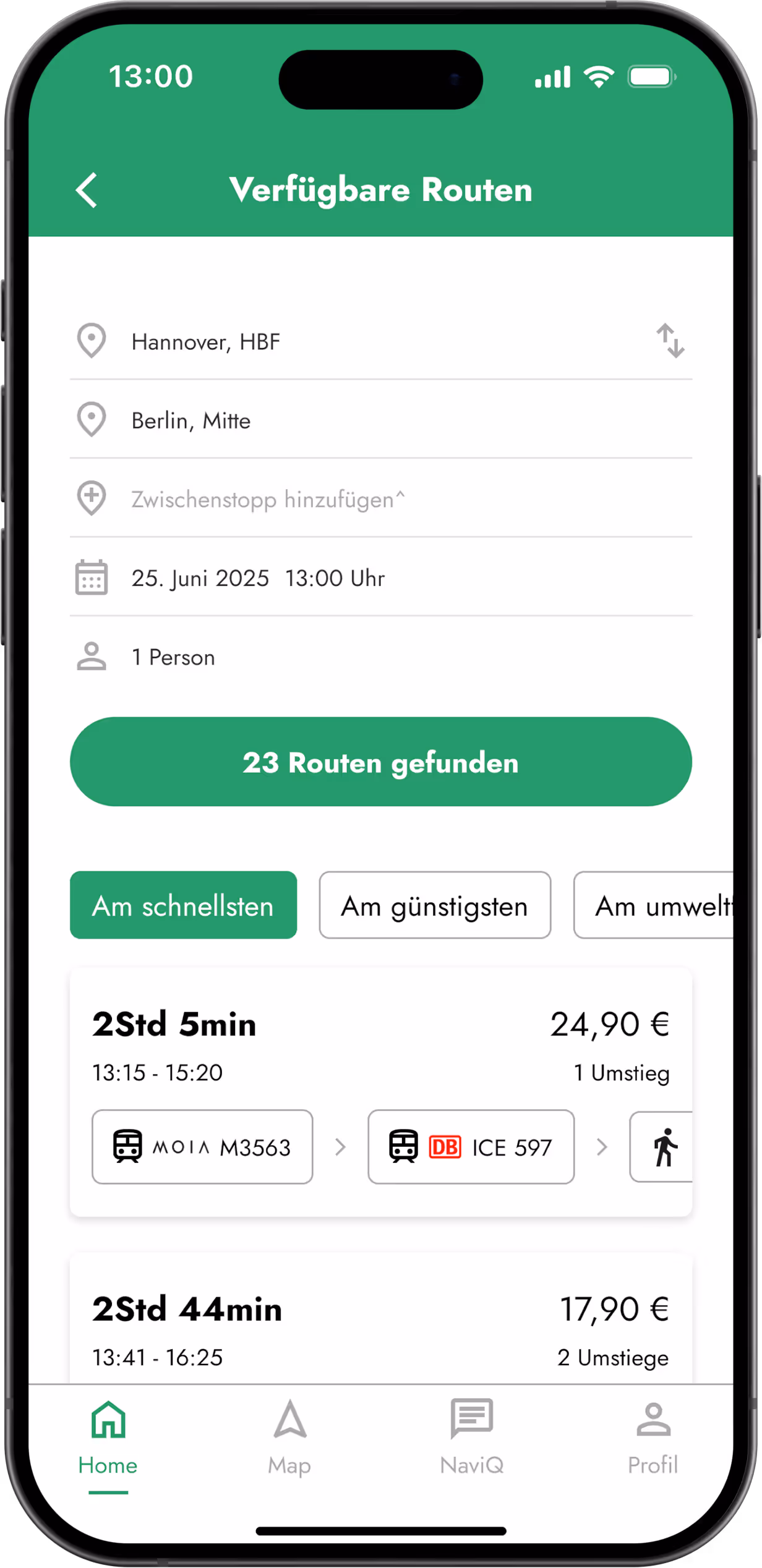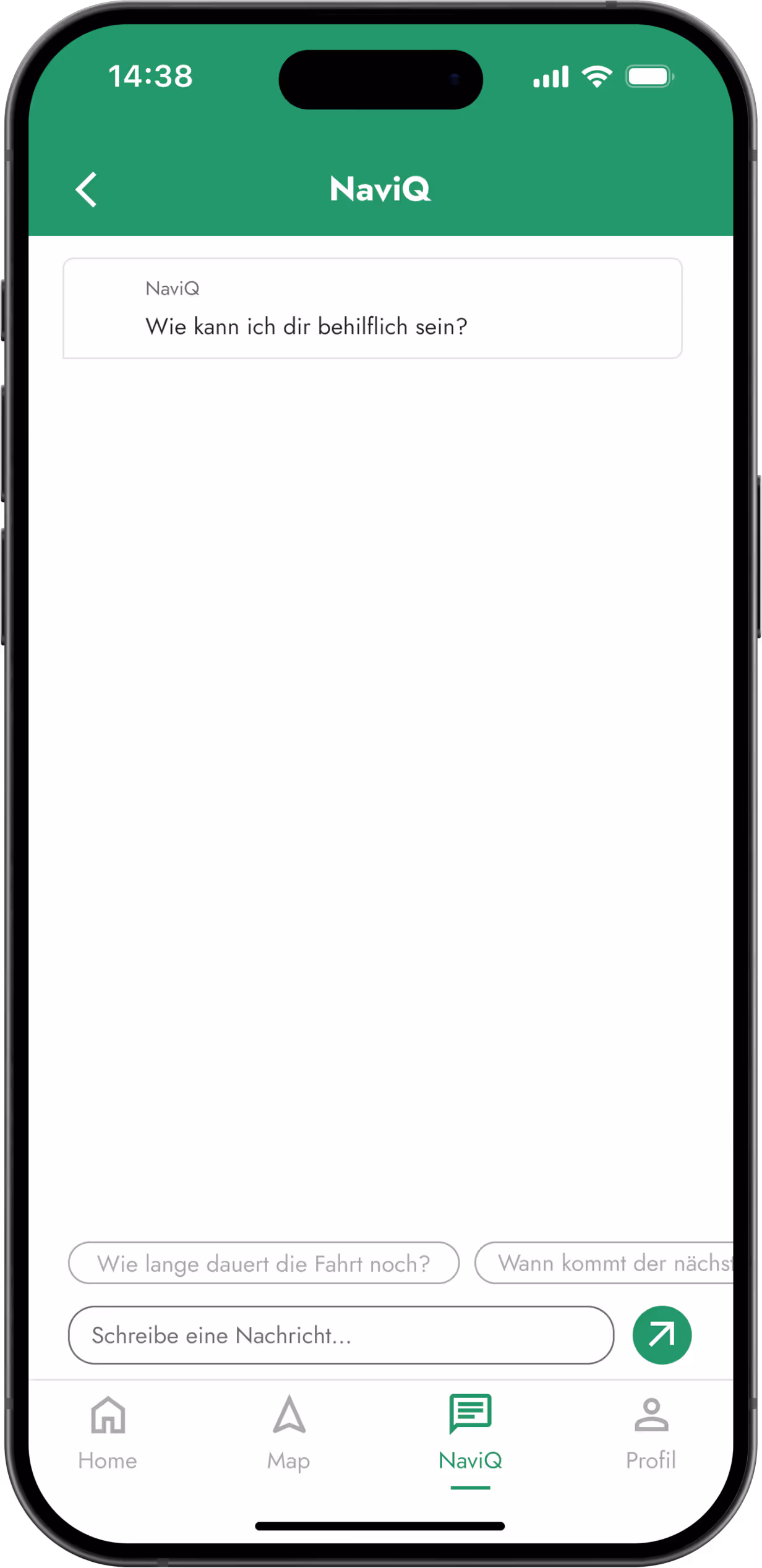 Über NaviQ können Nutzer gezielt Fragen stellen – etwa zur Fahrtdauer, zum nächsten Umstieg oder zu allgemeinen Abläufen. Der KI-gestützte Assistent liefert verständliche Antworten, denkt mit und hilft dabei, auch komplexe Reisesituationen im Blick zu behalten.