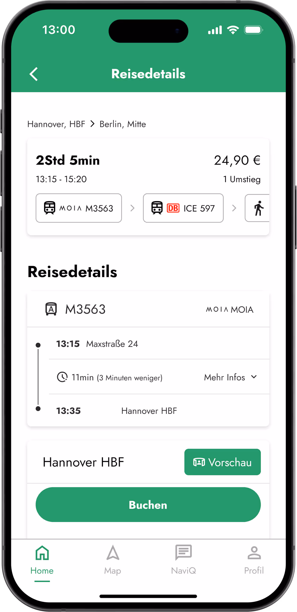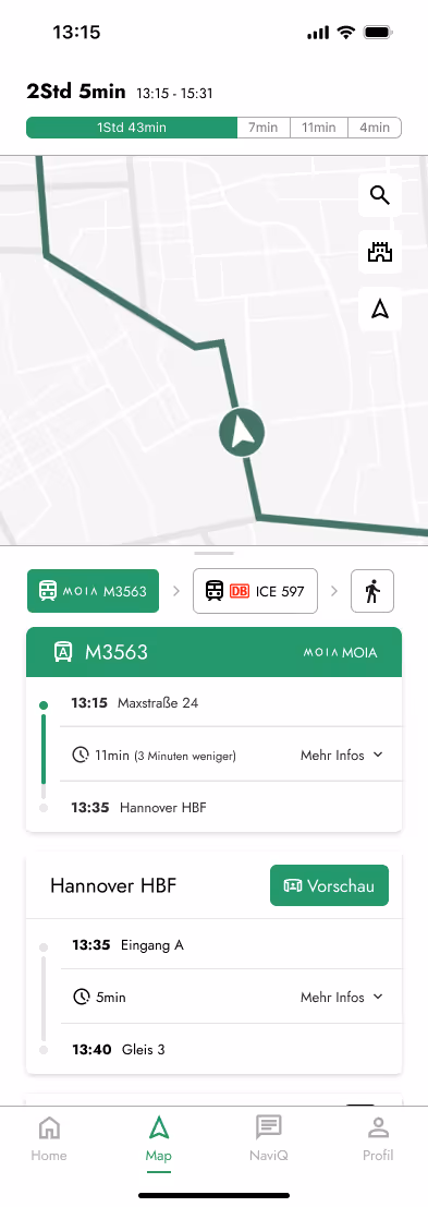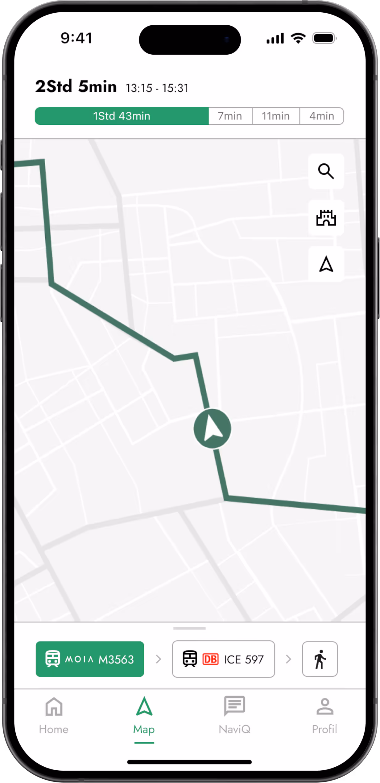 Mit Navira entwickelten wir eine Mobilitäts-App, die gezielt auf die identifizierten Herausforderungen reagiert und dabei alle wichtigen Funktionen in einer Anwendung vereint.