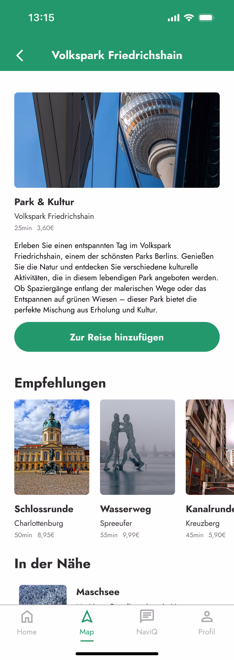 Sehenswürdigkeiten entlang der Route werden automatisch angezeigt und lassen sich flexibel zur Reise hinzufügen – für spontane Stopps ohne Umwege.